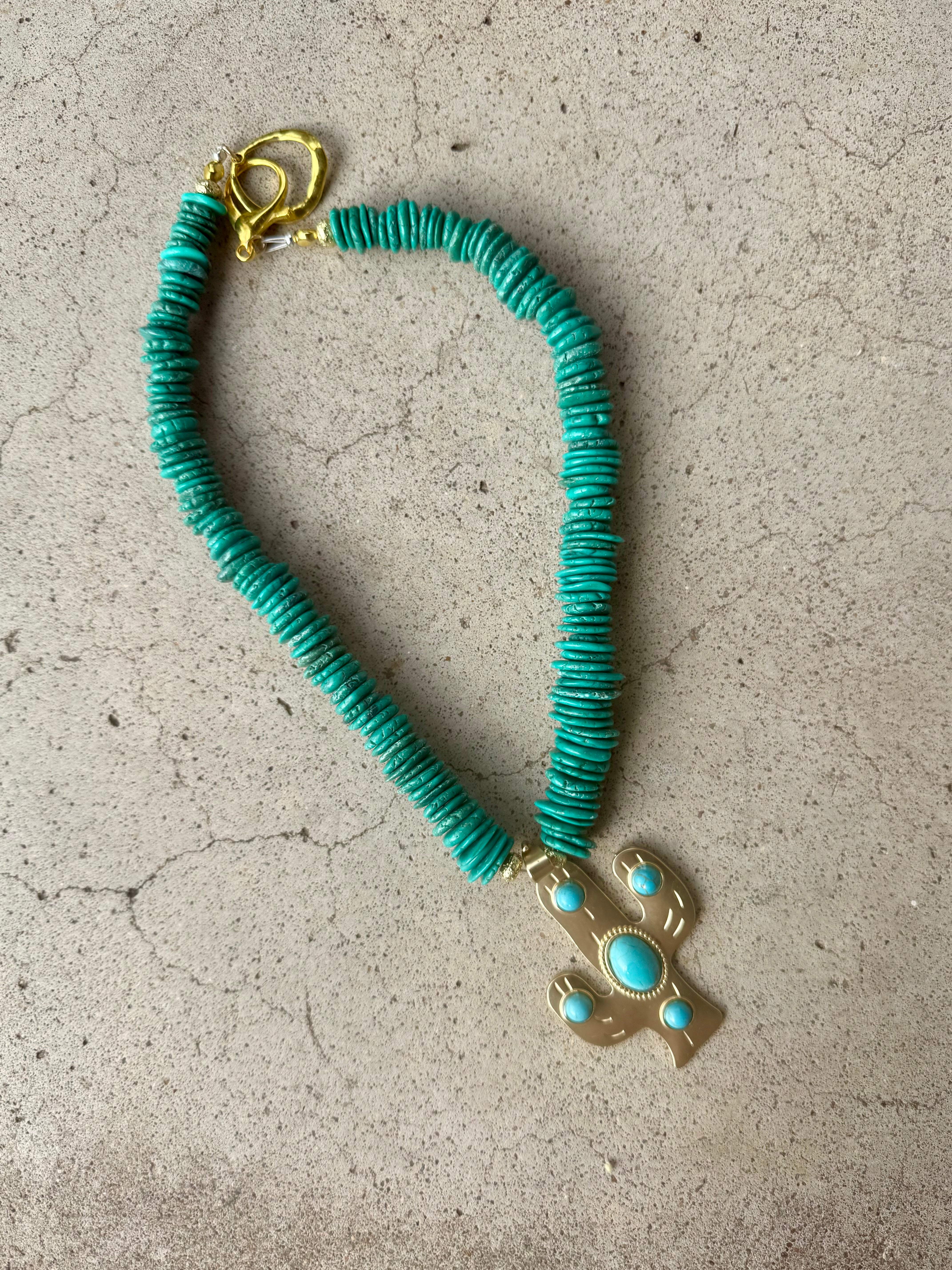 Handmade, Turquoise Heishi Gemstone Beaded Necklace ft. 20k Gold Plated, Non-tarnish light weight pendant